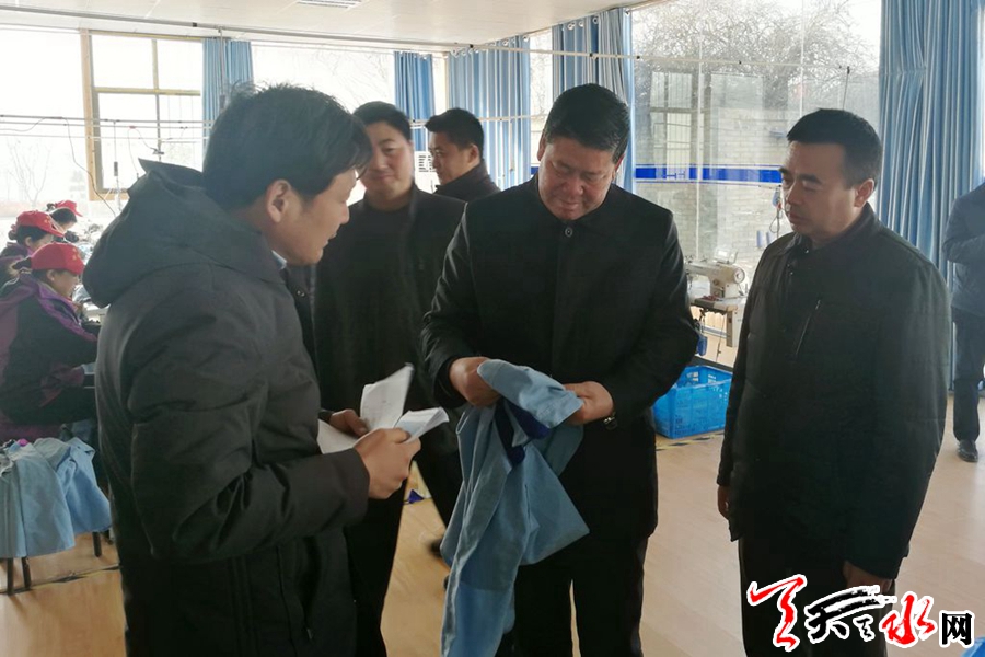 在谢家湾乡丁家沟村,王军实地查看了扶贫车间运营情况,并在村委会与镇村干部和驻村工作队员询问交流,详细了解该村村级组织建设、基础设施建设、产业发展以及民俗民风等方面的情况,并就如何发展产业、确保贫困户稳定脱贫等问题进行探讨交流。他指出,要把“扶贫车间”作为脱贫攻坚的有效途径,吸纳更多的农村留守人员在家门口就业,并通过就业培训掌握一技之长,为稳定脱贫打下基础。要立足传统,因地制宜,扶持发展花椒、辣椒、中药材等高效农业,提高土地产出率和效益,确保贫困群众稳定增收。要注重培育文明乡风,加大宣传教育力度,引导群众革除陈规陋俗,倡导厚养薄葬、勤俭节约,遏制高价彩礼,让社会主义文明新风尚在农村落地生根。