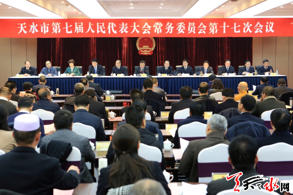 天水市第七届人民代表大会常务委员会第十七次会议决定:天水市第七届人民代表大会第四次会议于2019年1月15日在秦州召开,会期四天半(含1月14日代表报到、召开预备会议)。建议会议的议程是:听取和审议天水市人民政府工作报告;审查和批准天水市2018年国民经济和社会发展计划执行情况及2019年国民经济和社会发展计划草案的报告,批准2019年国民经济和社会发展计划;审查和批准2018年全市财政预算执行情况和2019年全市及市级财政预算草案的报告,批准2019年市级财政预算;听取和审议天水市人民代表大会常务委员会工作报告;听取和审议天水市中级人民法院工作报告;听取和审议天水市人民检察院工作报告;选举事项及其他。