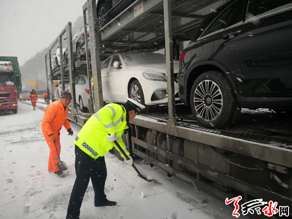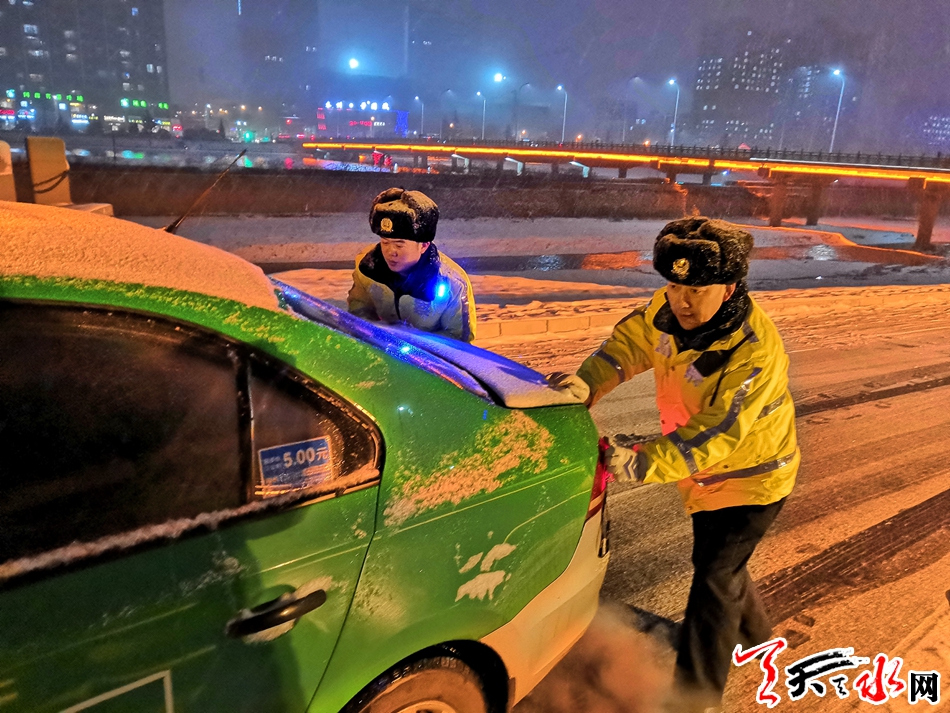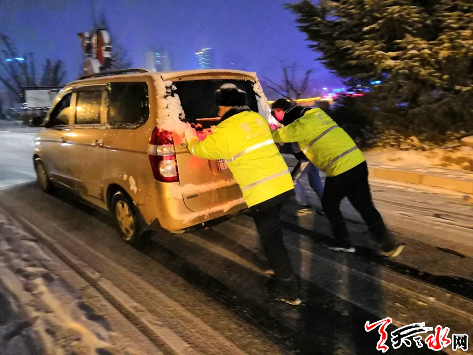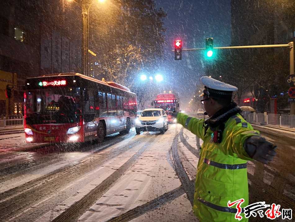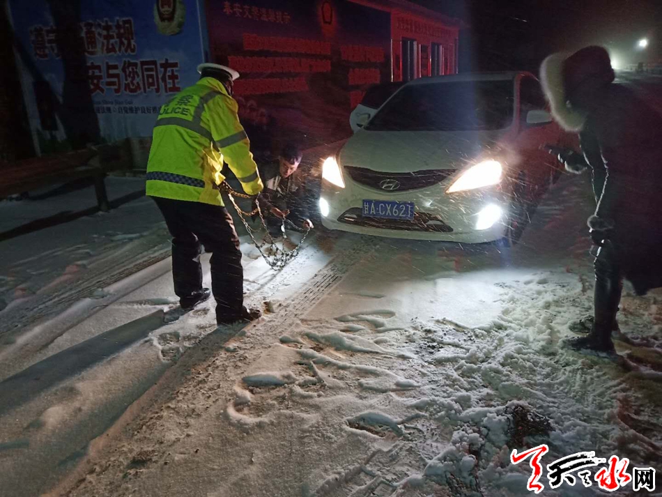 天天天水网讯(通讯员 刘冀远)12月27日,天水气象台发布道路结冰黄色预警信号。从中午开始,我市大部分地区出现小到中雪,局部大雪。针对此次降温降雪天气,副市长、市公安局党委书记、局长马瑛和副局长霍宝珊分别作出批示指示,要求积极应对冰雪天气对道路交通安全的影响,确保道路安全畅通。为确保冰雪恶劣天气条件下的道路交通有序、安全、畅通,全市各级公安交警部门迅速采取有力措施,加强交通疏导管控,全力做好降温降雪恶劣天气交通安全管理工作。截止目前,全市共出动警力 640余人次,警车152余台次,及时分流疏导车辆15600余辆次,全市未发生因冰雪天气造成的车辆严重滞留拥堵路段,未发生亡人道路交通事故。