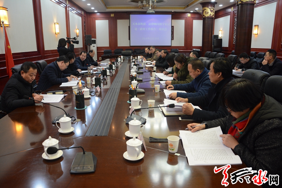 天天天水网讯【记者何郁】12月28日,副市长何东主持召开座谈会,征求市科技顾问团、法律顾问团专家对《政府工作报告》(征求意见稿)的意见和建议。