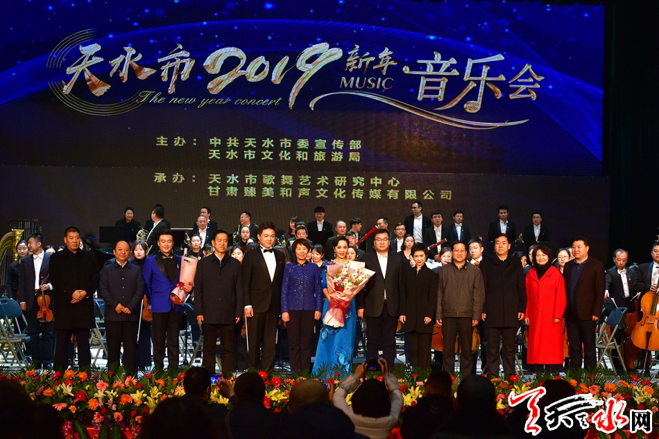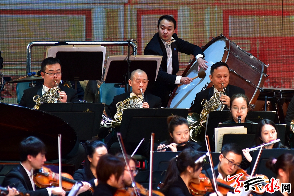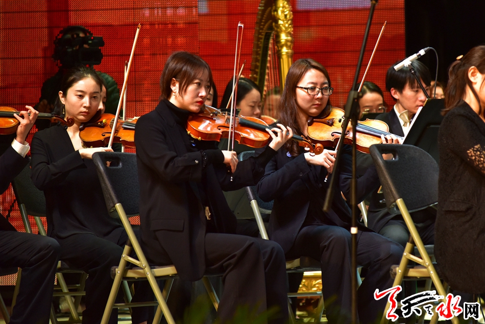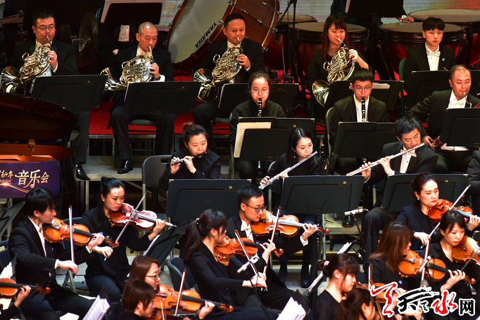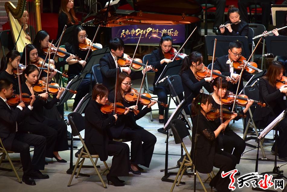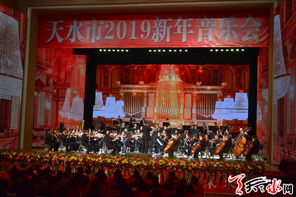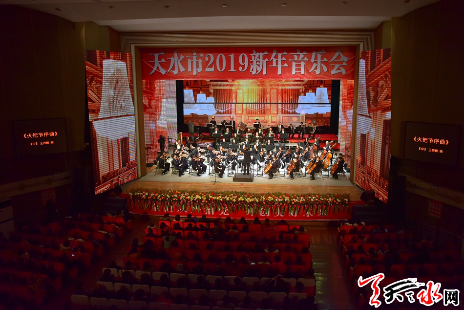 12月29日晚8时,由天水市委宣传部和市文化和旅游局主办的天水市2019新年音乐会在秦州大剧院精彩上演。陕西交响乐团为现场观众带来了十余首不同风格的经典交响曲,其中既有大家耳熟能详的《胡桃夹子组曲》、《拉德斯基进行曲》等经典曲目,更有以交响音乐的形式演奏的《红旗颂》、《红色娘子军组曲》等中国经典音乐,展现出丰富的表现力。音乐会既是献给我市市民的一份新年文化贺礼,也为新年期间营造出了欢乐祥和、文明有序、和谐健康的节日气氛。市领导王正茂、蒲朝晖、王晓琴、逯克宗、苏定武观看了音乐会。记者 周文涛 摄