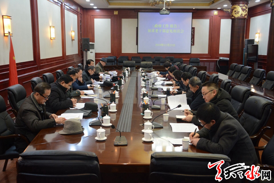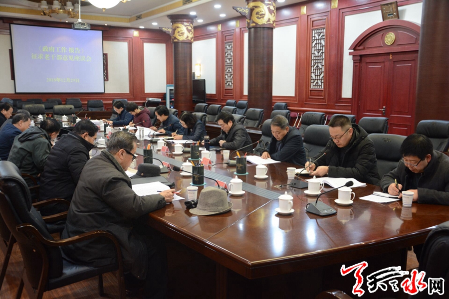 天天天水网讯【记者何郁】12月29日上午,副市长王燕主持召开《政府工作报告》征求意见座谈会,就《政府工作报告》(征求意见稿)听取部分老干部的意见建议。