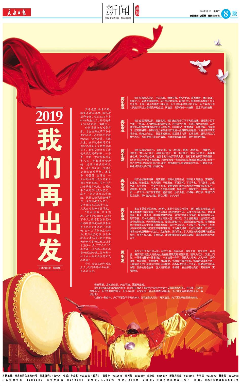 新闻工作是常干常新的工作,创新更是党的新闻舆论工作的关键词,《天水日报》的改版将始终紧跟时代,在常变常新中,努力做好党的新闻舆论工作,肩负起天水市委机关报的职责与使命。