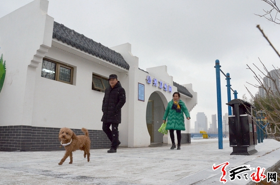 冬日的天水藉河风情线上,飘飘扬扬的雪花落了一湖面,从兰州来天水探亲的王芳正带着5岁的女儿拍雪景,女儿忽然嚷着要上厕所,王芳忙问过往的行人,哪里有公厕,行人指着藉河风情线上相隔几百米的一座一座修建别致的小房子说:“那就是公厕,藉河风情线上相隔不远就有一座造型别致、功能齐全的现代化免费公厕。”王芳不由感慨:“天水的公厕不仅方便,而且美观。”