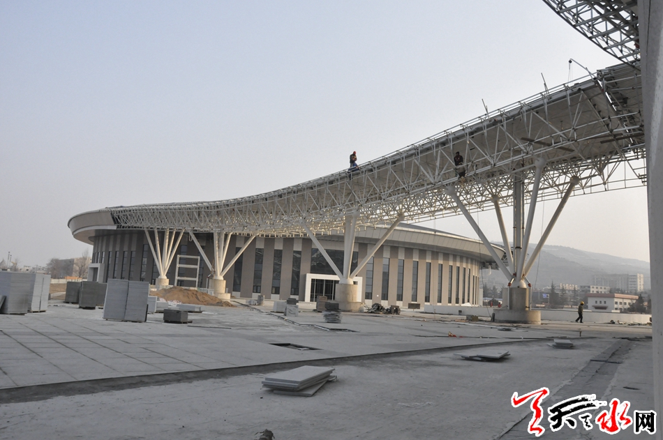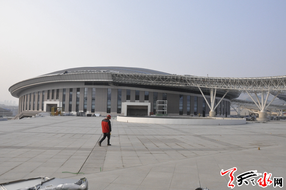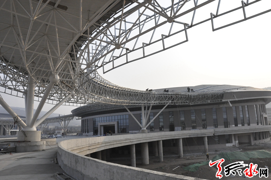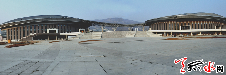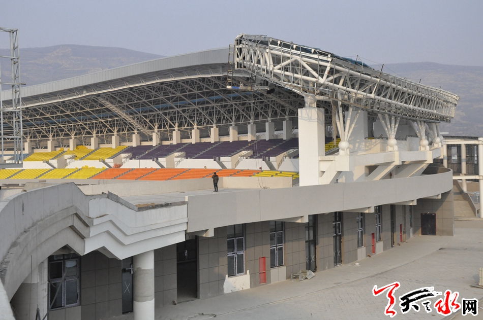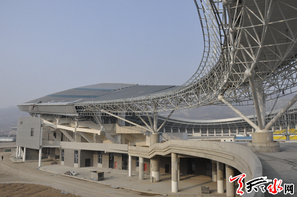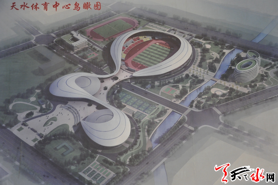 天水市体育中心项目是省、市列重点建设项目之一。该项目建成后将进一步完善我市基础服务功能,提升城市品位,满足全市广大群众的健身需求和提高承办国际国内赛事活动能力。天水市体育中心项目,北临天北高速公路,南接羲皇大道,东至罗家沟,西通羲通公交麦积总站。项目总占地面积约436亩,总建筑面积10.5?万平方米,建设内容为“一场两馆,一校一中心”,即:2万座的体育场、5000座的体育馆、1500座的游泳馆、容纳500名学生和70名教师规模的体育运动学校、全民健身中心及地下停车场。项目分三个功能区:体育赛事服务区、全民健身服务区、体育教学训练区。