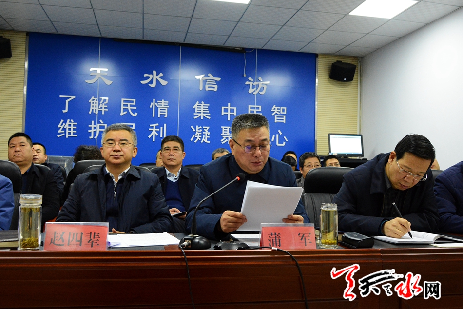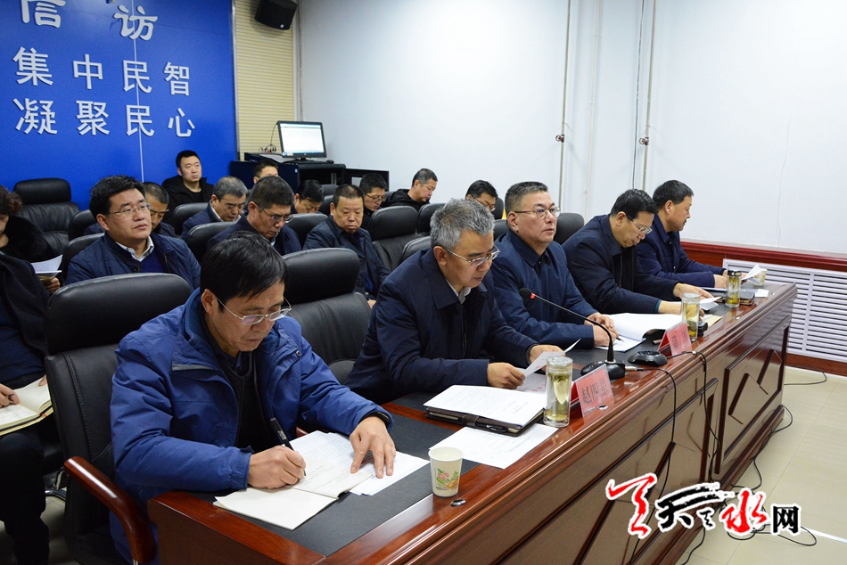 天天天水网讯(全媒体记者马哲) 1月9日上午,全市信访工作视频推进会议召开,会议传达了市委书记王锐,市委副书记、市长王军关于信访工作的批示,通报了2018年全市信访工作情况及重点信访案件,部分县区进行了会议发言。市委常委、政法委书记蒲军出席会议并讲话,市委常委、常务副市长赵四辈主持会议。