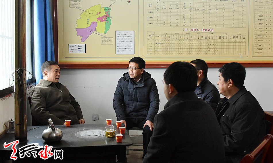 在董坪村,蒋晓强与镇村干部进行了深入交流,详细了解全村脱贫攻坚和党建工作情况,帮助分析存在的困难和问题,共同探讨今后的工作措施。他强调,要牢固树立“围绕扶贫抓党建、抓好党建促脱贫”的思想,充分发挥党的政治优势、组织优势、密切联系群众优势,以强有力的党建保障推动脱贫攻坚工作。