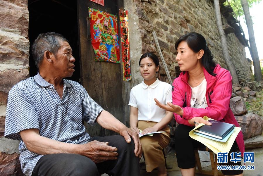 2018年6月12日,河北省沙河市纪委监察委工作人员在蝉房乡口上村向村民了解扶贫资金落实情况。 新华社记者 朱旭东 摄
