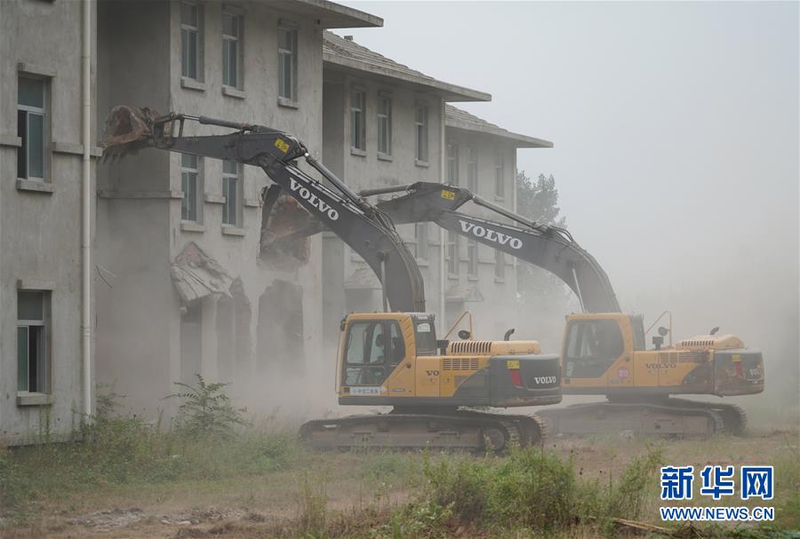 2018年8月14日,大型机械对陕西西安市鄠邑区蒋村镇的违建别墅进行拆除。新华社记者 邵瑞 摄
