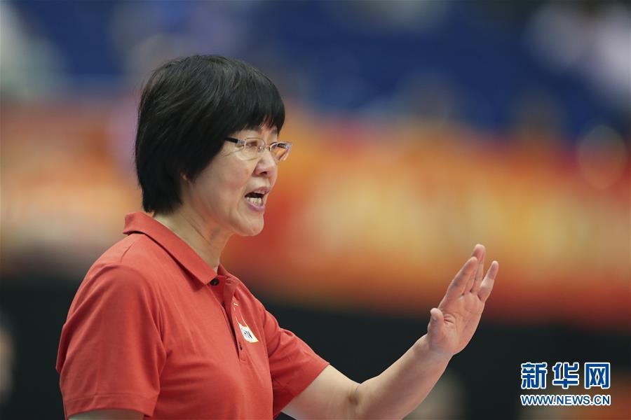 2018年10月19日,在日本横滨,中国队主教练郎平在2018年世界女子排球锦标赛半决赛中国队对阵意大利队的比赛中指导队员。新华社记者杜潇逸摄