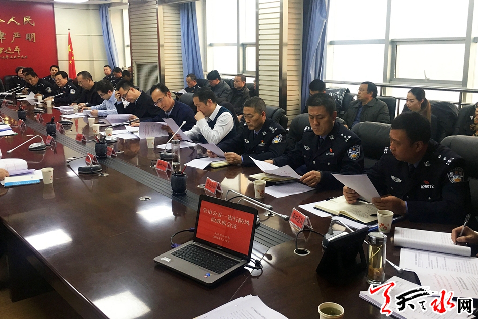 天天天水网讯【全媒体记者 冯丽娟】1月10日,我市召开公安银行防范金融风险联席会议。副市长、市公安局局长马瑛在会上强调,全市公安、金融监管部门、国有金融机构要迅速行动,真抓实干,共同打好防范化解金融风险攻坚战,为全市经济社会高质量发展提供良好环境保障。