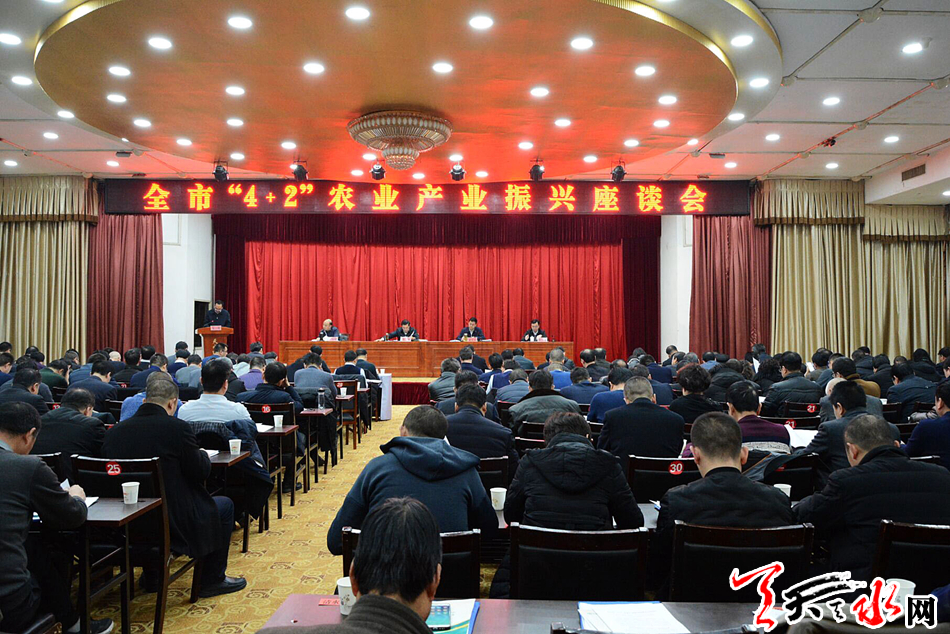天天天水网讯【全媒体记者马哲】1月12日,我市召开“4+2”农业产业振兴座谈会,市委副书记赵卫东在会上强调,要深入学习贯彻党的十九大精神和习近平总书记视察甘肃重要讲话及“八个着力”重要指示精神,在推动农业产业振兴方面积极学习政策,找准问题,转变观念,理清思路,科学谋划,全面启动实施全市“4+2”农业产业振兴行动,促进全市脱贫攻坚和农业产业发展再上新台阶。