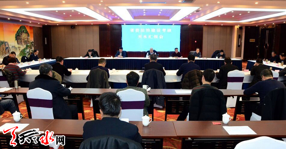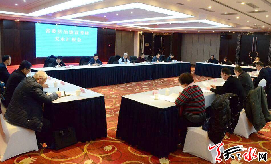 在12日下午召开的汇报会上,在听取了我市法治政府建设工作情况和我市2018年法治建设工作情况后,考核组对我市的法治建设工作给予了充分肯定,认为天水市能够按照省委的要求,在全面推进法治建设方面组织保障坚强有力,法治建设取得新进展。制度建设程序严格,依法科学决策有了新提升。“放管服”改革推进力度大,服务质量得到优化。规范权力运行抓手实,执法司法公信力得到有效提升法治宣传方法多,普法教育工作成绩显著。社会综合治理力度大,矛盾排查化解效果明显。考核组希望我市在今后的工作中要进一步继续深入开展宪法的学习宣传活动,在全社会形成尊法、守法、用法的良好氛围。要坚持问题导向,进一步增强法治思维和依法行政能力,依法有效化解社会矛盾纠纷,全面加快法治政府进程,提高天水经济社会发展能力。
