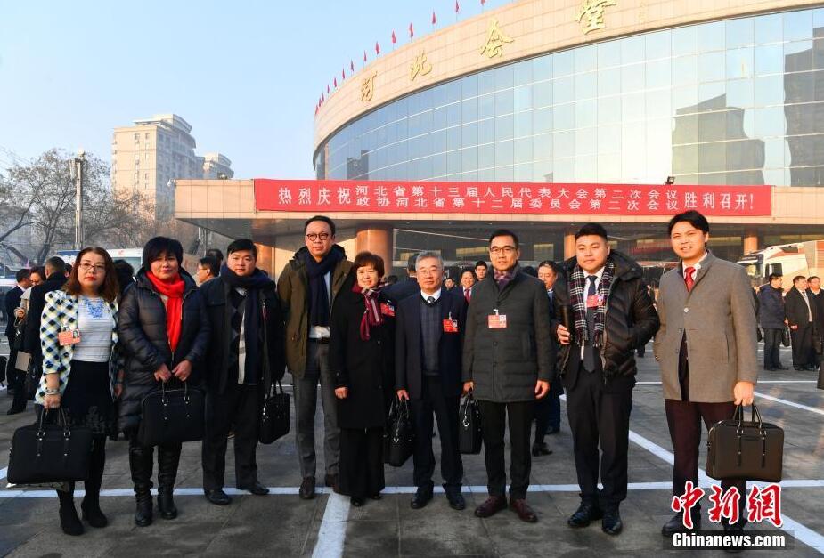 1月13日,河北省政协十二届二次会议在石家庄河北会堂开幕。图为部分澳门委员合影留念。中新社记者 翟羽佳 摄