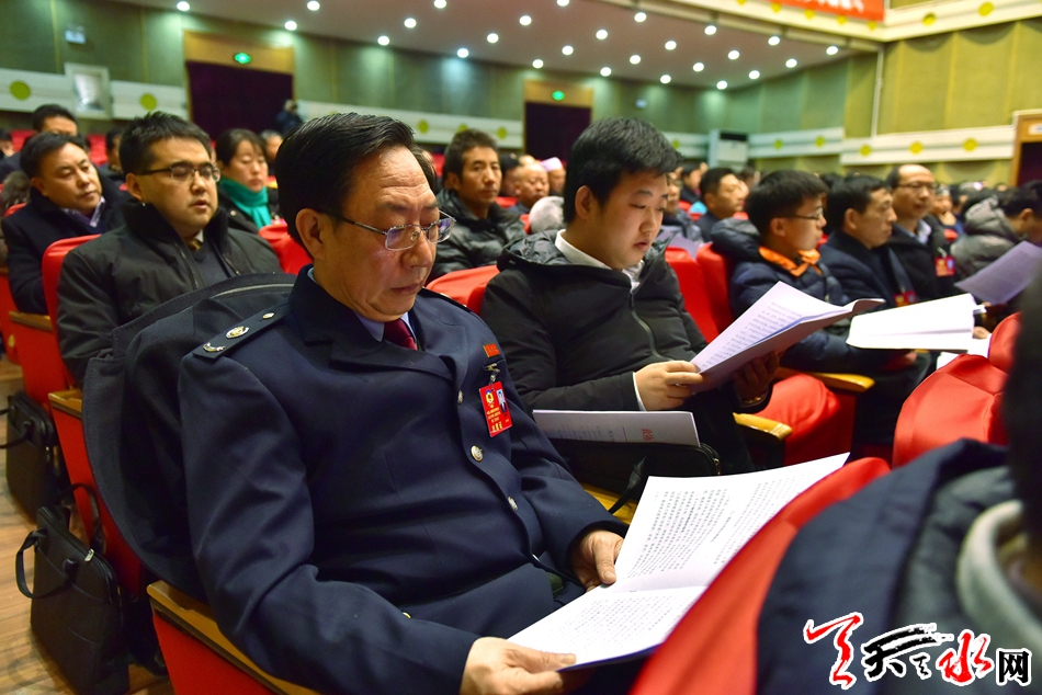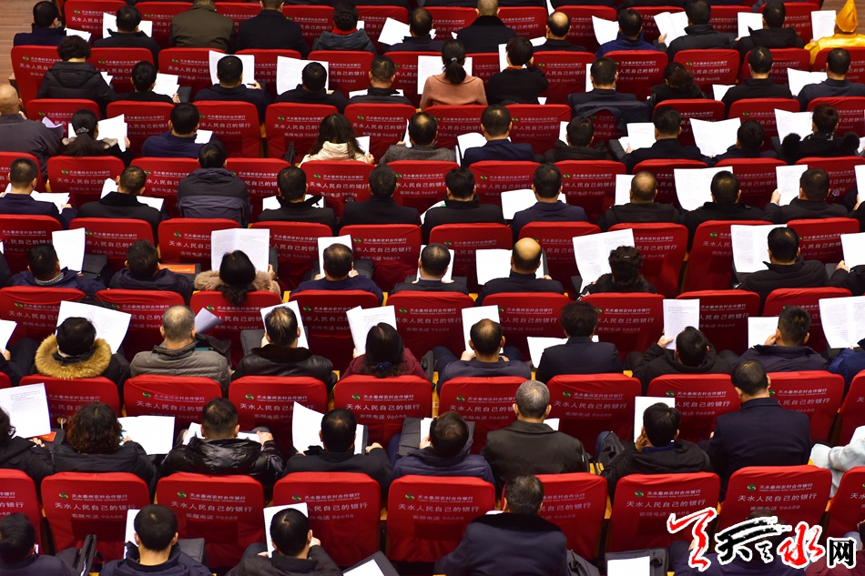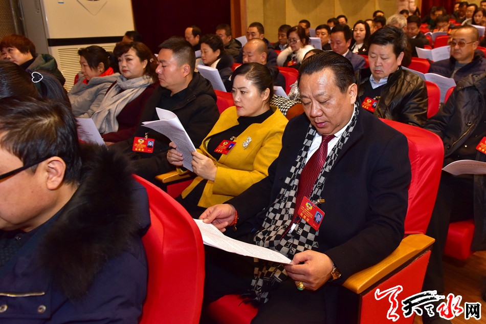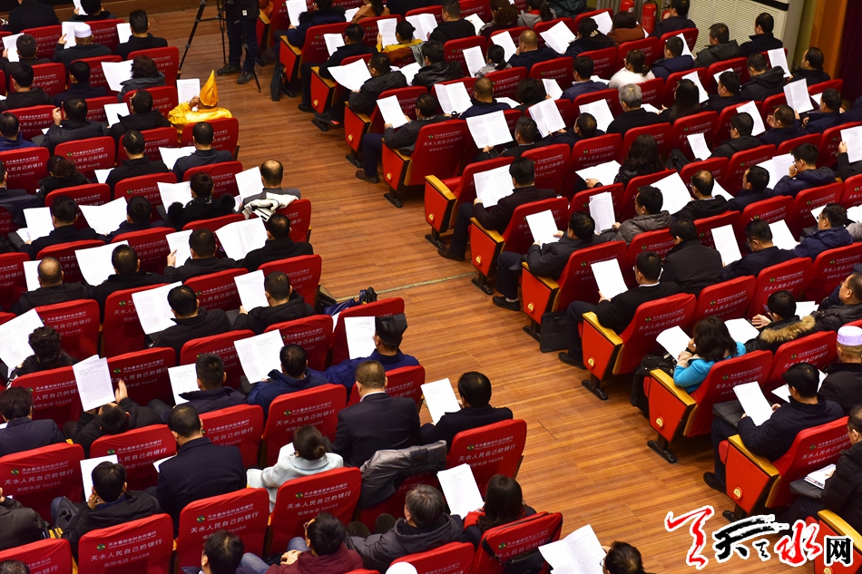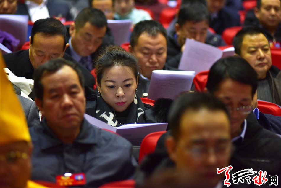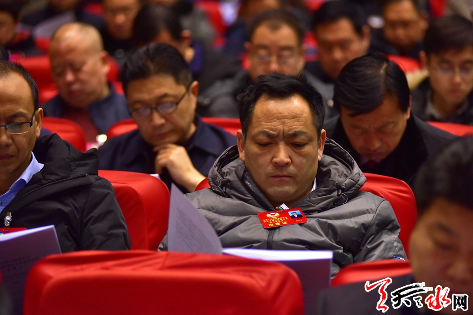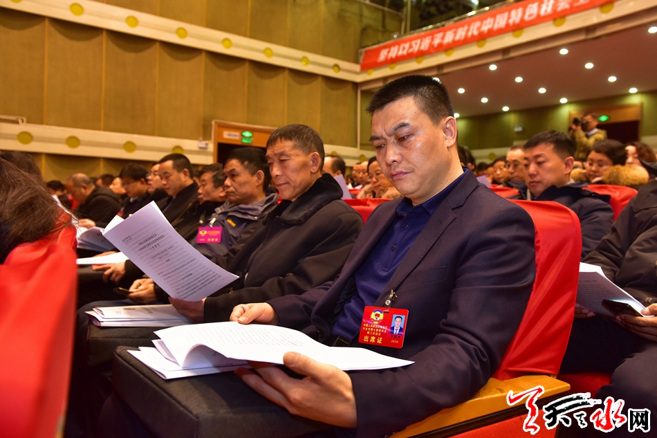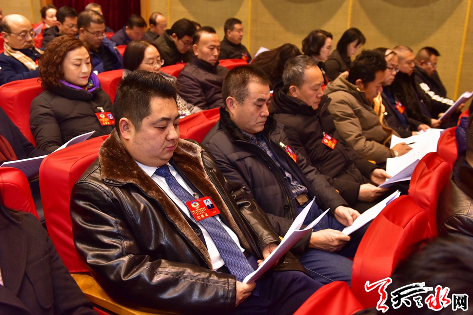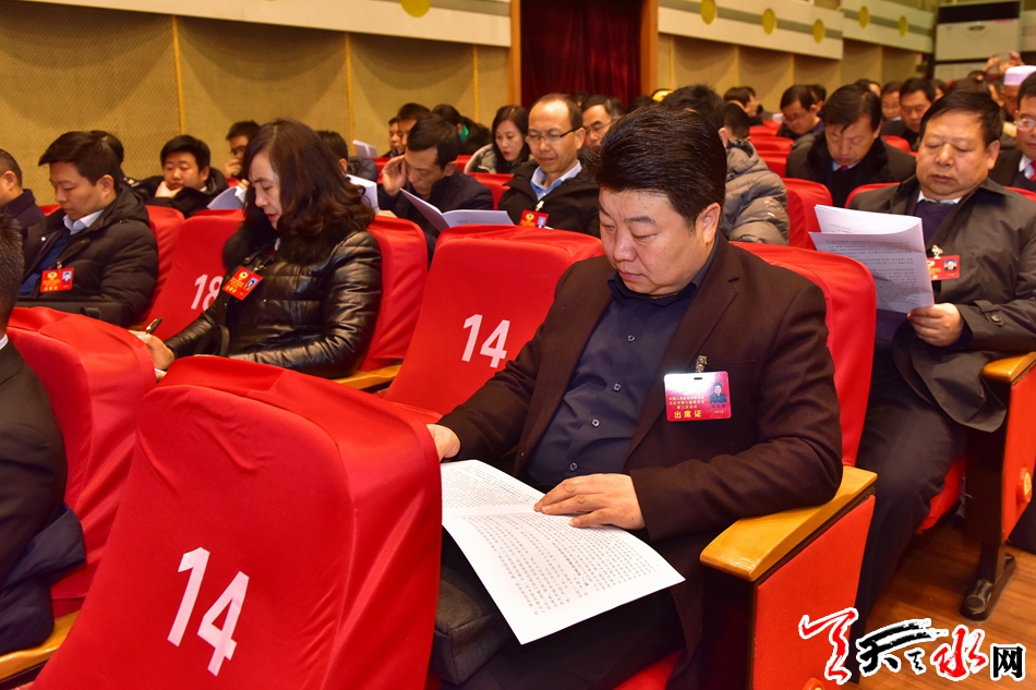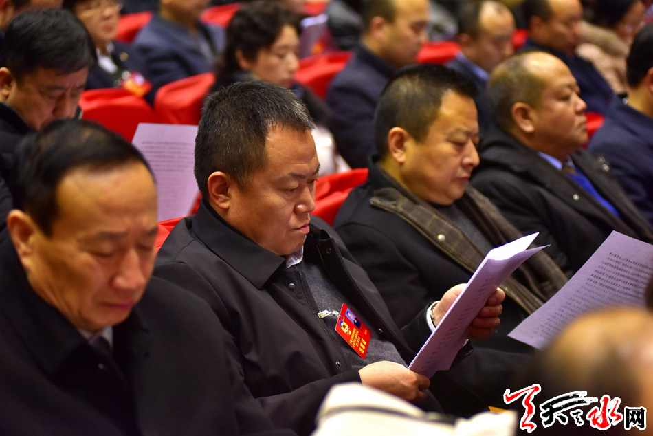 秦州剧院内,象征全国各族人民大团结的政协会徽悬挂于主席台正中,十面鲜艳的红旗分列两侧,“坚持以习近平新时代中国特色社会主义思想为指导,为实现中华民族伟大复兴的中国梦不懈奋斗” 的红色条幅格外醒目,处处洋溢着团结、民主、和谐、热烈的气氛。