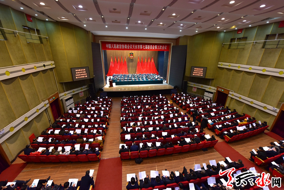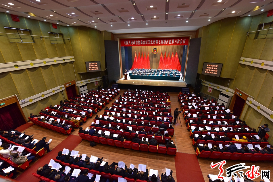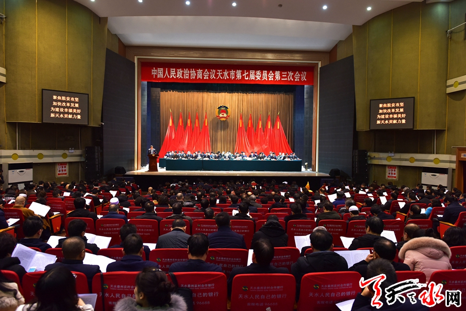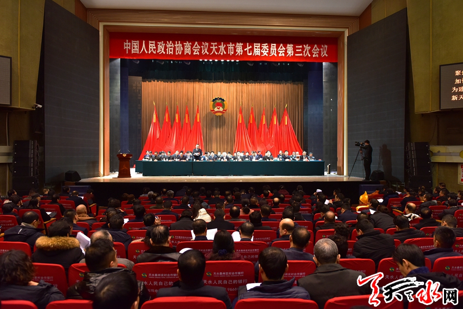 天天天水网讯【全媒体记者冯丽娟 吴丽娜/文 周文涛/图】砥砺奋进新时代,同心共绘新蓝图。1月14日上午,中国人民政治协商会议天水市第七届委员会第三次会议在秦州剧院隆重开幕。大会期间,300多名市政协委员将紧紧围绕聚焦脱贫攻坚、加快改革发展,为建设幸福美好新天水,与全省全国一道全面建成小康社会贡献智慧和力量。