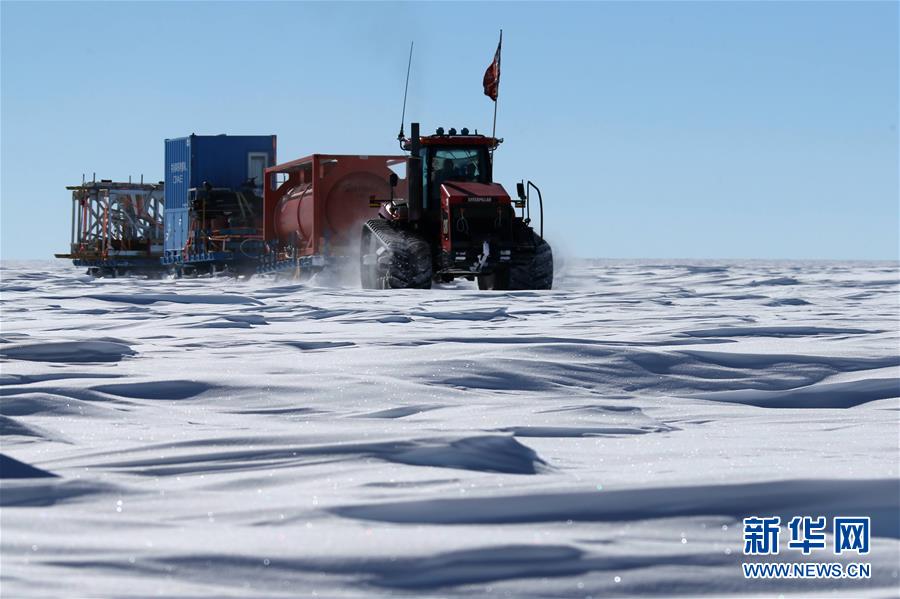 1月2日,昆仑队一辆“卡特”车行驶在南极内陆冰盖“大锅底”路段。 当日,中国第35次南极科学考察队昆仑队16名队员成功穿越南极内陆冰盖“大锅底”,进入冰盖最高处的冰穹A地区。