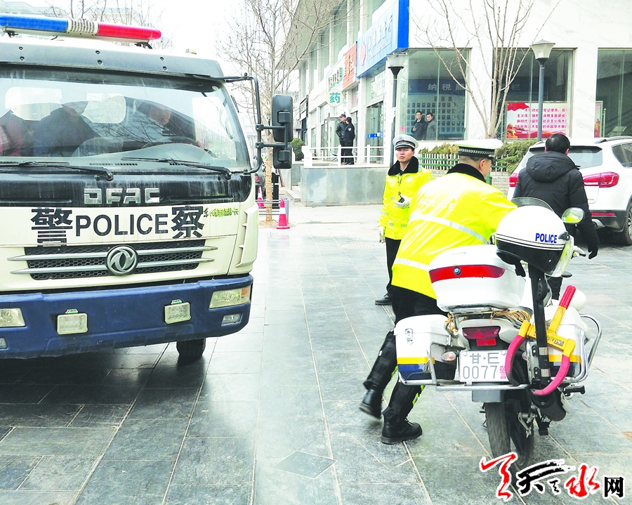 1月14日上午,记者来到天水宾馆采访时,秦州公安分局治安管理大队副大队长彭贤明正在现场协调指挥警力。他告诉记者,为确保两会召开期间安全稳定,秦州公安分局专门召开专题会议,紧紧围绕两会工作重点,周密部署、压实责任,全员在岗在位,强化社会面防控,做好应急工作,织牢安全“过滤网”,助力两会安保。