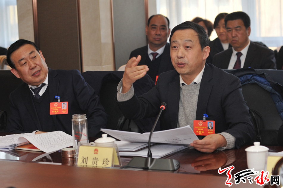 1月15日,参加市七届人大四次会议的市人大代表分团审议《政府工作报告》,审查《天水市2018年国民经济和社会发展计划执行情况及2019年国民经济和社会发展计划草案的报告》,审查《2018年全市财政预算执行情况和2019年全市及市级财政预算草案的报告》。记者 孙镇 摄