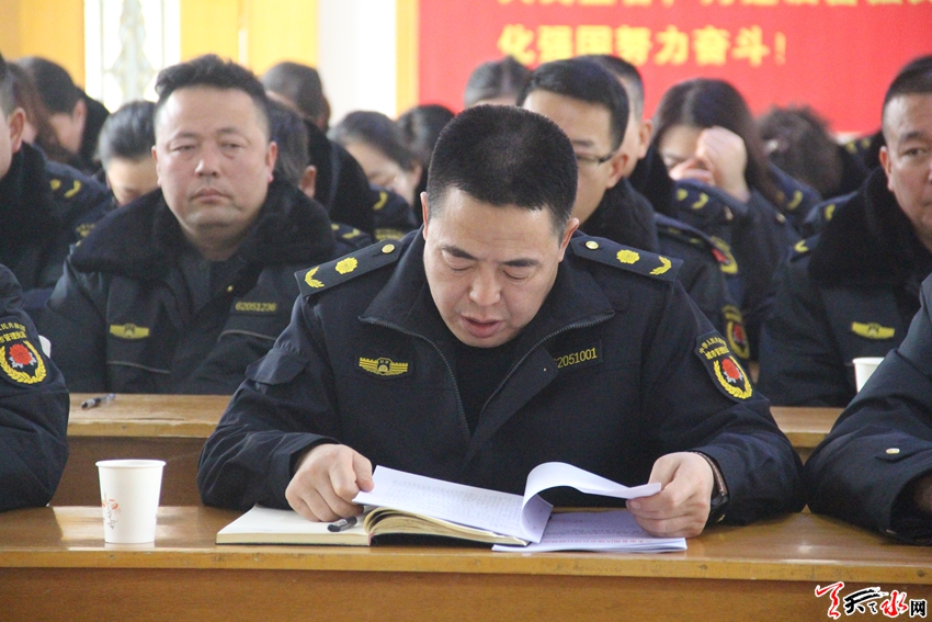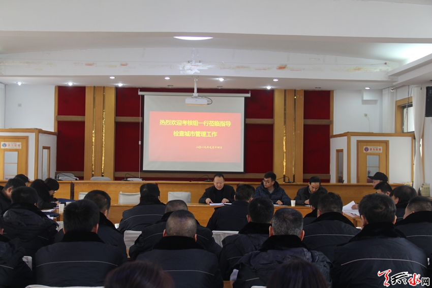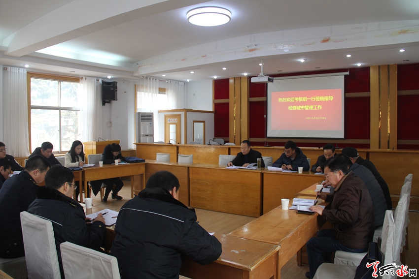 天天天水网讯 2019年1月14日,秦州区2018年度考核工作领导小组深入区执法局,采取听取汇报、述职述廉、民主测评、个别谈话、查阅资料等方式,全面、系统、准确、客观考核区执法局共性目标和业务目标完成情况,并对领导班子和领导干部进行了考核和综合研判,区执法局党组书记、局长王禳虎代表领班子逐项向考核组做了详细汇报。
