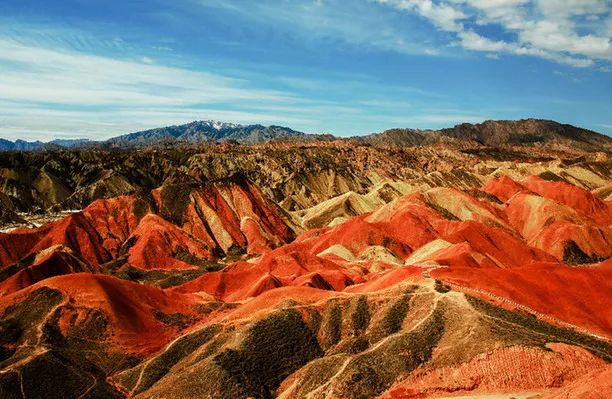 从千米高空俯瞰,张掖七彩丹霞景区如同一尊脚踩梨园河凌波西来的观音造像。