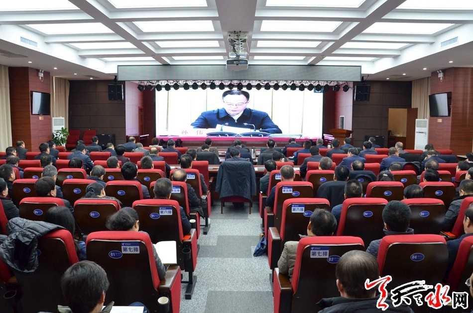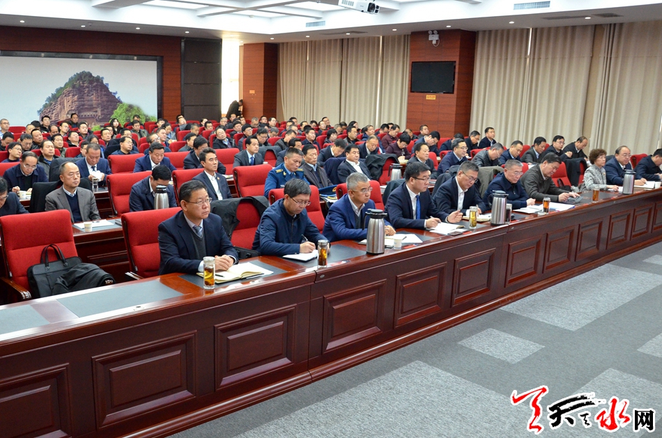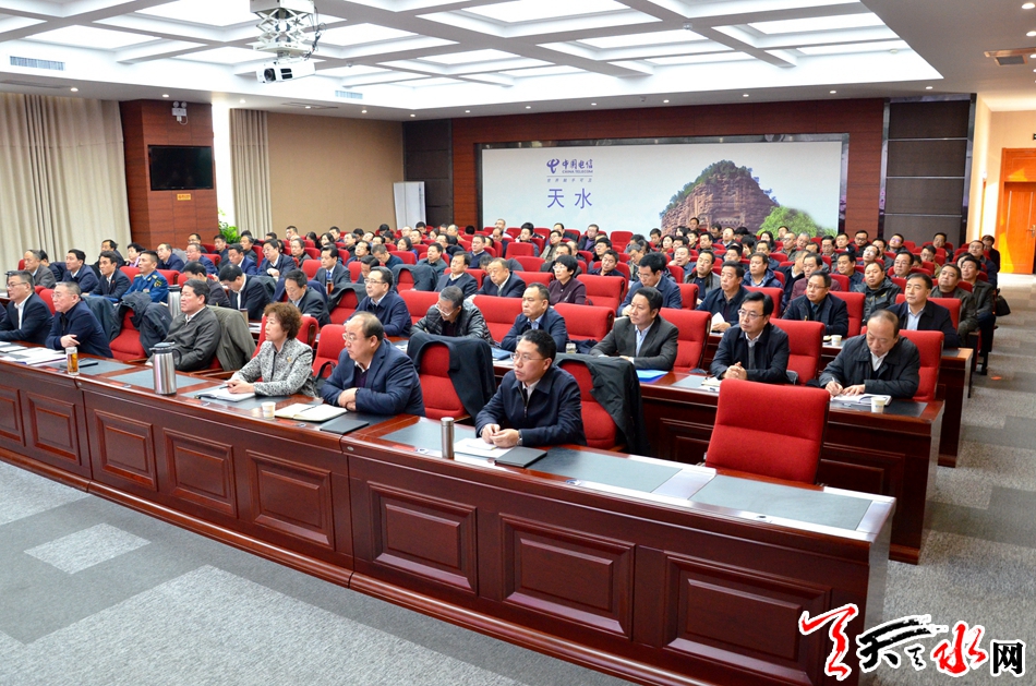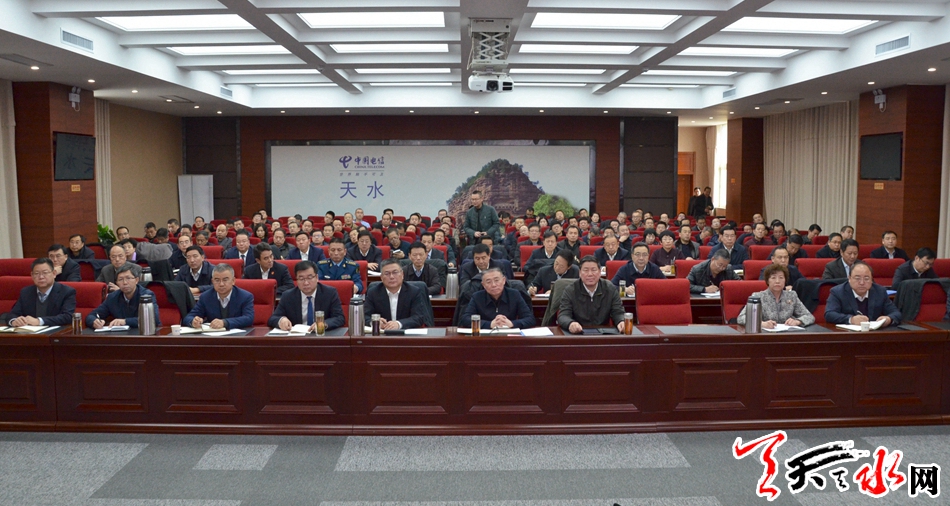 天水市领导王锐、王军、蒲军、王正茂、温利平、赵四辈、宫辉、刘骁、王洪义、张建杰、刘天波、宋建平、唐宏伟、张智明、马忠福、张发魁及各县区和市直各有关部门负责同志在天水分会场收听收看了会议。