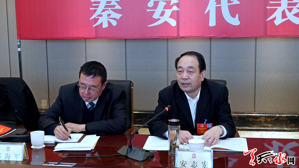 天天天水网讯【记者张文都】1月15日,市人大代表、市人大常委会副主任安志宏在秦安代表团审议《政府工作报告》。