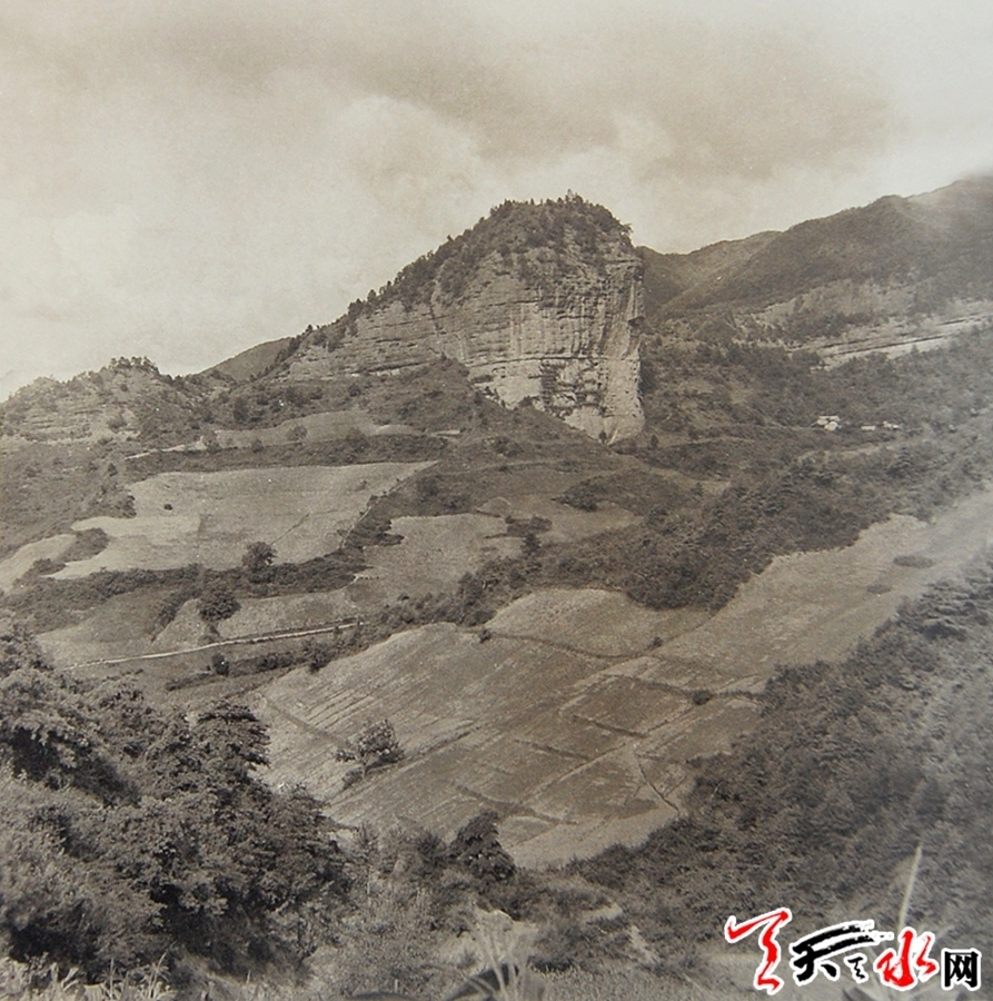 通过庐江草堂所藏从豆积山远望麦积山石窟的外景照片,可以看到当时麦积山周边的环境面貌,麦积山石窟周边全部是开垦的田地,对此还有个说法。
