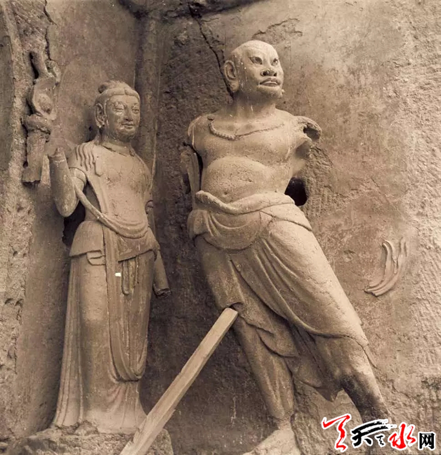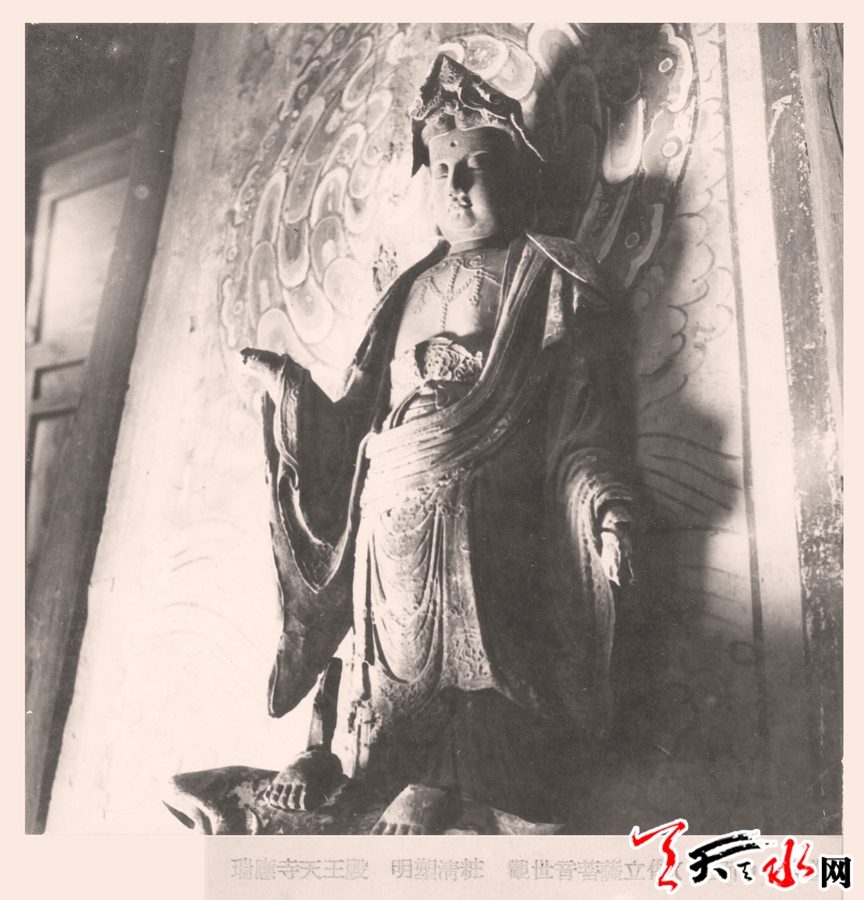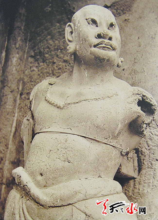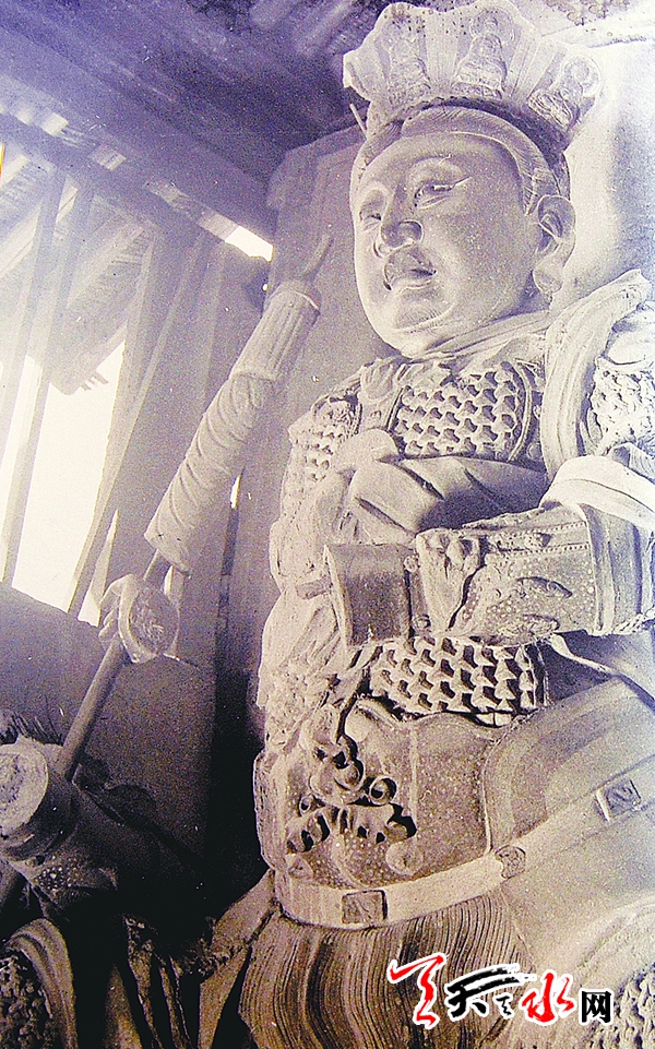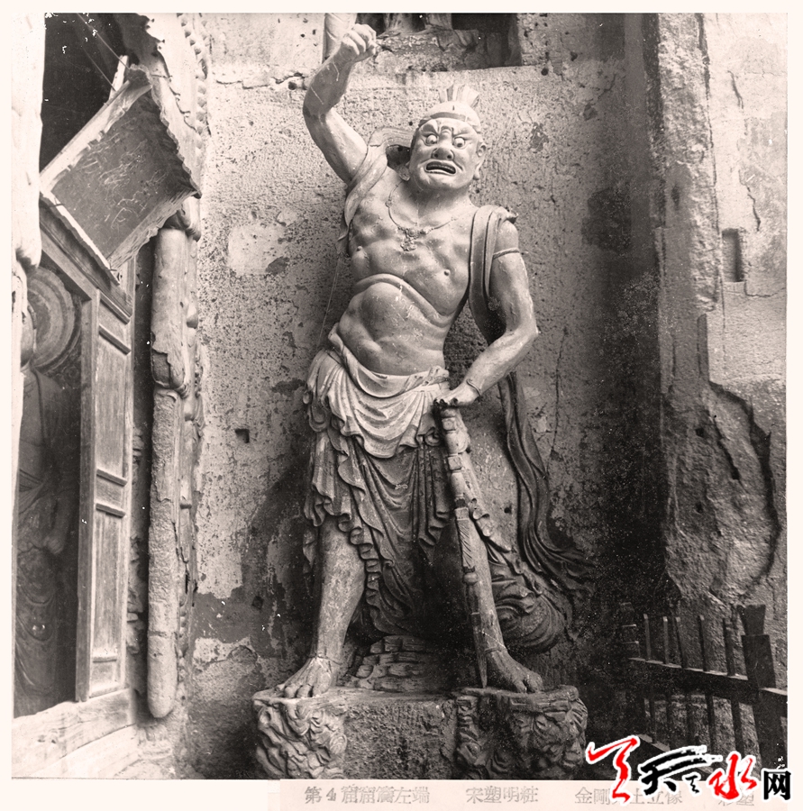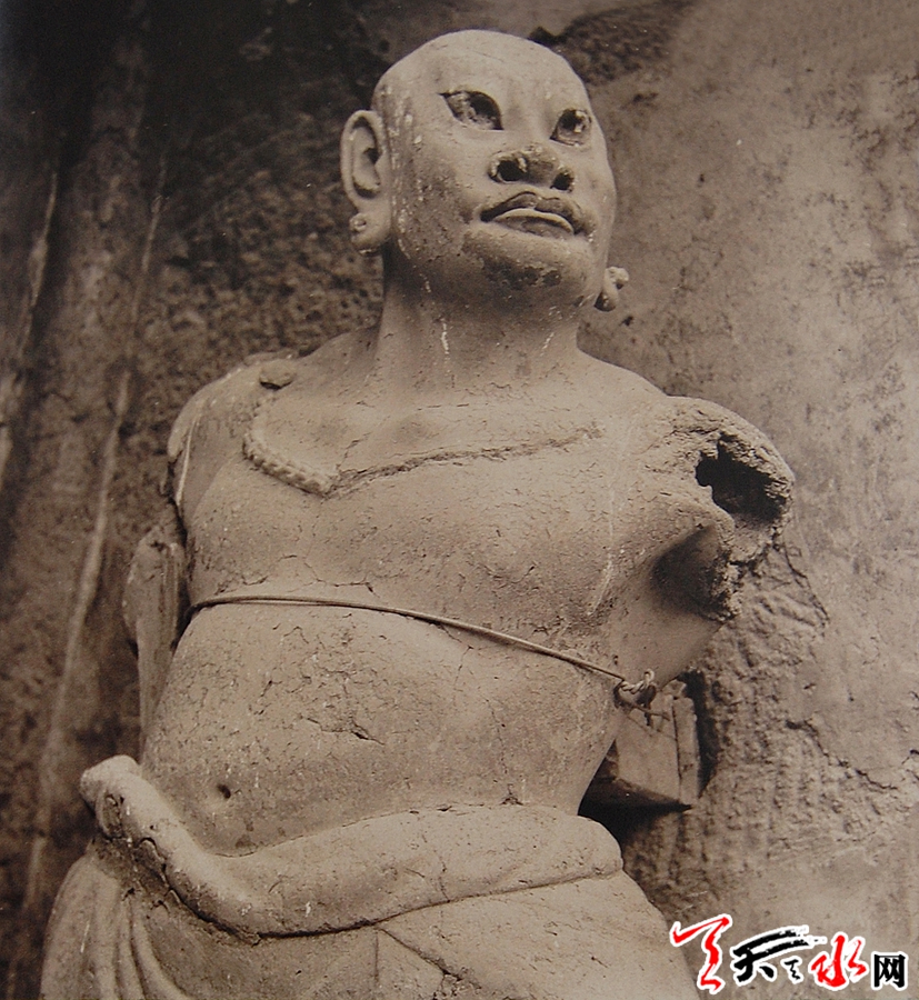 通过查阅有关天王殿建设的资料董广强了解到,1954年9月该建筑的屋顶进行过修缮活动,虽然记载中没有直接描述对建筑门窗的维修,但是如对损坏窗棂这类小的维修活动,完全是可以在屋顶的维修中一并修理的。由此可以判断,这张照片的拍摄时间应该在修缮之前。另外,通过照片也让我们得以了解明代麦积山石窟寺院中的造像艺术。