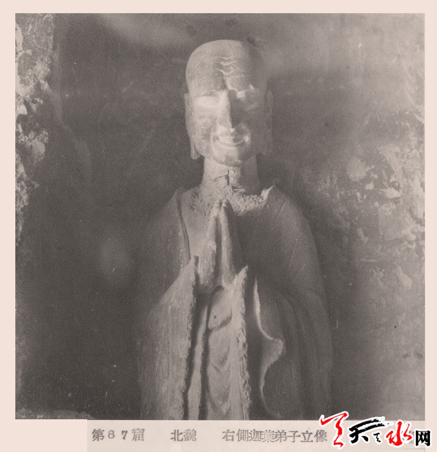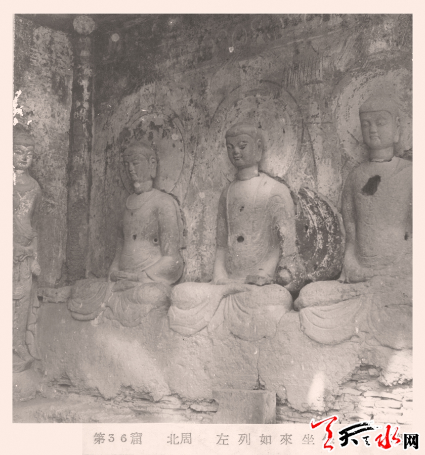 此次,何鸿先生捐出的这些旧照片,是继西北勘察团和中央勘察团完成麦积山石窟的勘察之后,比较早的以个人名义对麦积山石窟所做的照片记录,这些资料都是对两次有组织的考察图片资料的补充。虽然洞窟内的塑像图片有重复现象,但是由于拍摄者的理解不同,拍摄的角度也各自不同,所以这些照片可以相互印证,从多个角度反映洞窟内塑像的面貌和保存状态。