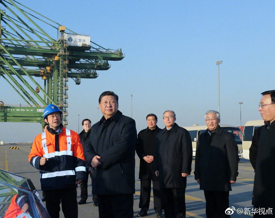 来到天津港码头,习近平听取了天津港服务京津冀协同发展等情况介绍。从天津港的兴旺可以看出我国航运事业、港口建设发生了沧桑巨变,同时也能够看出,振兴实体经济,对国家发展至关重要。