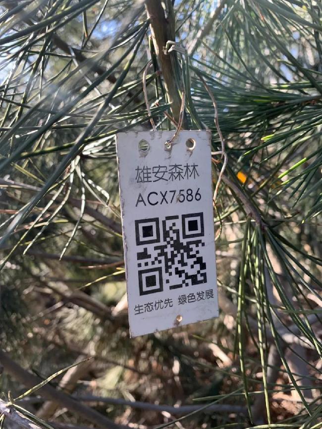 △雄安新区内树木上有二维码,它是树的身份证。(央视记者张淳拍摄)