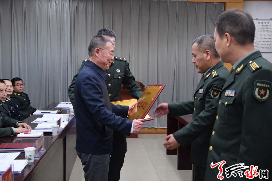 王锐在讲话中回顾了2018年全市经济社会发展情况,对2018年部队建设情况予以充分肯定,并就如何抓好部队2019年工作提出了建议。王锐强调,今年是新中国成立70周年,是全面建成小康社会关键之年,也是决胜实现国防和军队建设2020年目标任务的攻坚之年,要严格按照军委国防动员部、西部战区和省军区党委总体部署,聚力备战打仗,强化改革创新,狠抓工作落实,努力实现天水国防动员和后备力量建设新进步。要坚定旗帜引领,始终用习近平强军思想武装头脑、新论断把握大局、新要求指导行动,毫不动摇维护和贯彻军委主席负责制,筑牢绝对忠诚的思想根基。要聚焦职能使命,自觉扛起练兵打仗的政治责任,牢记主责主业,狠抓应急应战,创新训练理念和方法手段,全力推进新时代练兵备战工作,不断提高遂行使命任务的能力。要牢记根本宗旨,充分发扬军政军民团结的优良传统,加快推进更加广泛、更深层次、更高效益的军民融合深度发展,持续巩固双拥共建,着力营造天水国防动员建设良好环境。
