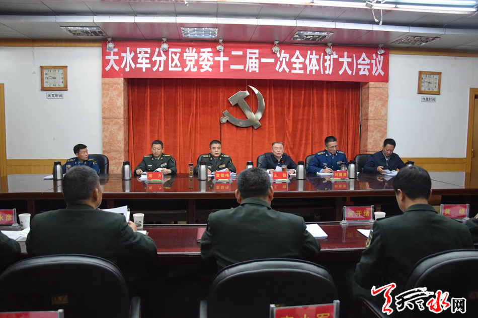 天天天水网讯【全媒体记者吴丽娜】 1月19日,天水军分区党委召开十二届一次全体(扩大)会议。市委书记、军分区党委第一书记王锐出席会议并讲话。他强调,要坚持以习近平新时代中国特色社会主义思想为指导,深入贯彻党的十九大精神、习近平强军思想和新时代军事战略方针,牢记职责使命,聚焦练兵备战,攻坚克难、开拓创新,扎实工作、锐意进取,奋力开创天水国防后备力量建设新局面。