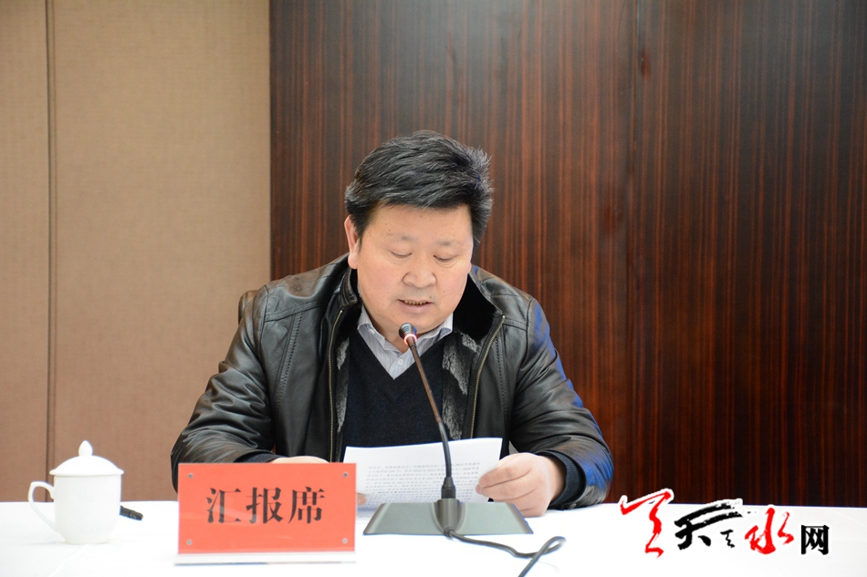 会议传达学习了汪洋同志在临夏州调研脱贫攻坚工作时的重要讲话精神,以及全国扶贫开发工作会议、“三州三区”脱贫攻坚座谈会、省委农村工作会议精神;听取了武山、甘谷整县脱贫摘帽退出市级初审情况和全市2018年脱贫攻坚工作自评报告、全市2018年脱贫攻坚工作报告起草情况的汇报。