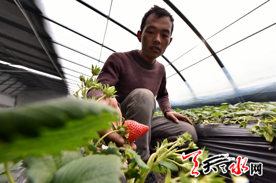 1月20日,记者在孙集村见到了正在大棚里察看草莓长势的骆同辉。“天水草莓市场价格高,草莓品质也好,这里种植草莓前景好。”已在浙江有十余年草莓种植经验的骆同辉,在谈到有关草莓的事时表现出的自信溢于言表。今年35岁的骆同辉,个子虽不高,但言谈举止中透着南方人的精明,记者了解到他之前就在浙江从事草莓种植,与草莓“交往”的十余年里积攒了较为丰富的种植经验和管理方法。去年他在麦积区渭南镇从事草莓种植的同乡那里了解行情后,7月份来天水开始了自己的创业梦想。