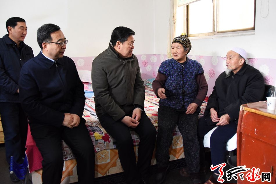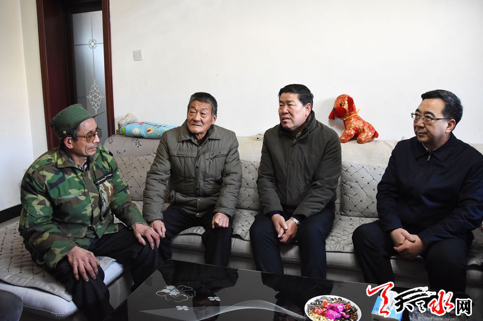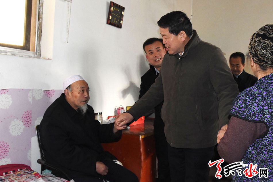 王军一行首先来到花牛镇高家湾村,看望慰问了低保户刘思敏、杨旺旺,五保户罗继存、高启云以及重灾户陈建英、武建兴等困难群众。每到一处,王军都与困难群众围坐在一起,详细了解他们的收入及住房、吃水、取暖、就医等方面的情况,鼓励他们要坚定战胜困难的信心决心,保持积极向上的乐观心态,在党和政府的帮助下,把日子越过越好。王军要求各有关方面一定要时刻把群众的疾苦和冷暖放在心上,扎实做好扶危助困工作,运用好医疗救助、社会保障、就业扶持等惠民政策,真正把党和政府的温暖送到困难群众的心坎上,让他们早日走出困境,过上幸福生活。