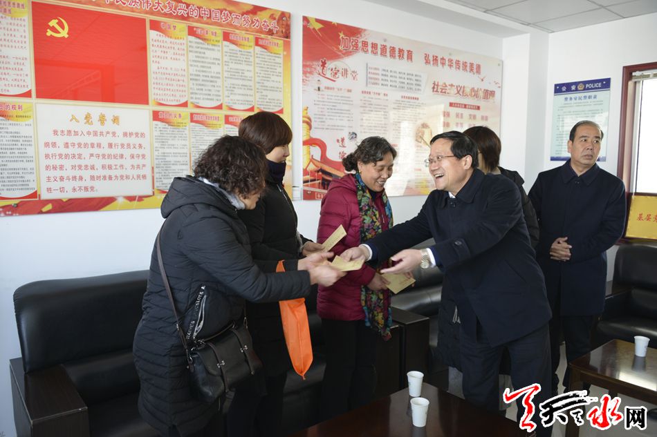 天天天水网讯【全媒体记者吴丽娜 实习生 高兴】春节将至。带着牵挂和祝福,1月22日,市委副书记、市长王军赴麦积区开展“送温暖”慰问活动,看望慰问困难群众、困难党员以及困难企业,为他们送去党和政府的关怀,并致以新春的问候。