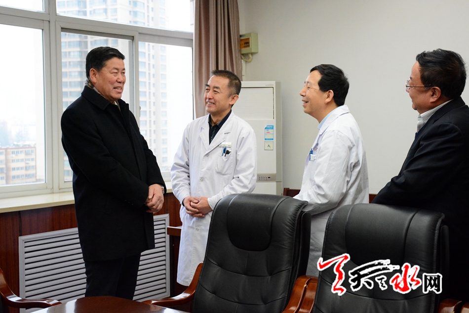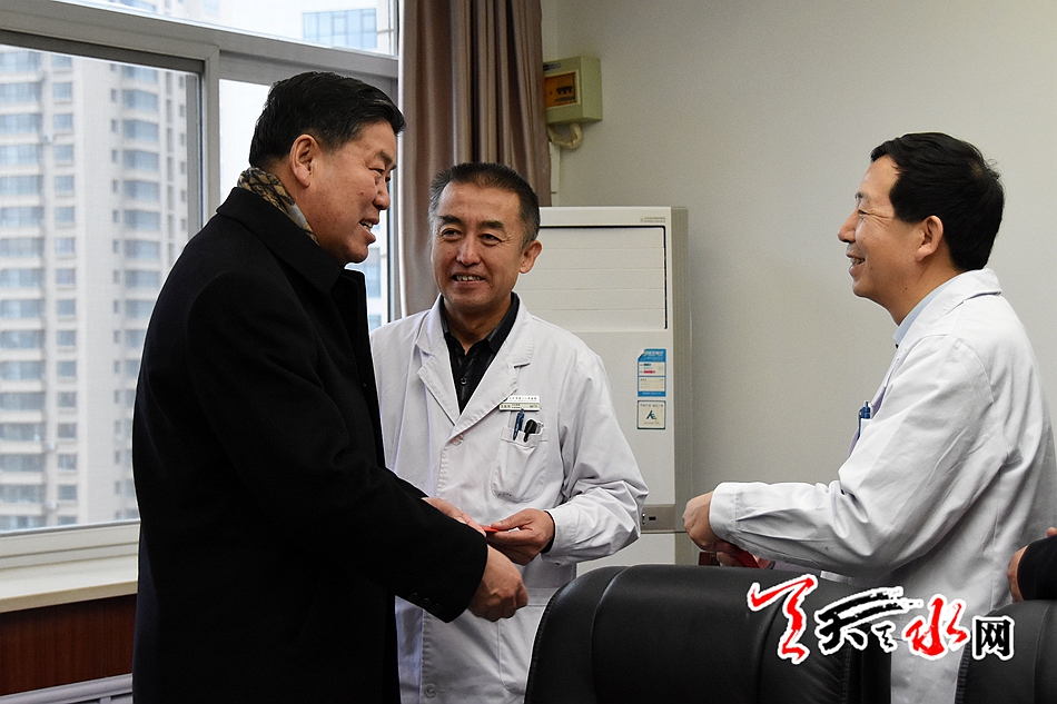 天天天水网讯【全媒体记者吴丽娜】1月24日上午,市委副书记、市长王军带领市直有关部门负责人来到天水市第一人民医院,看望慰问联系的齐胤尊、王根绪两位专家,为他们送去新春祝福,并通过他们向全市医务工作者致以节日的问候。