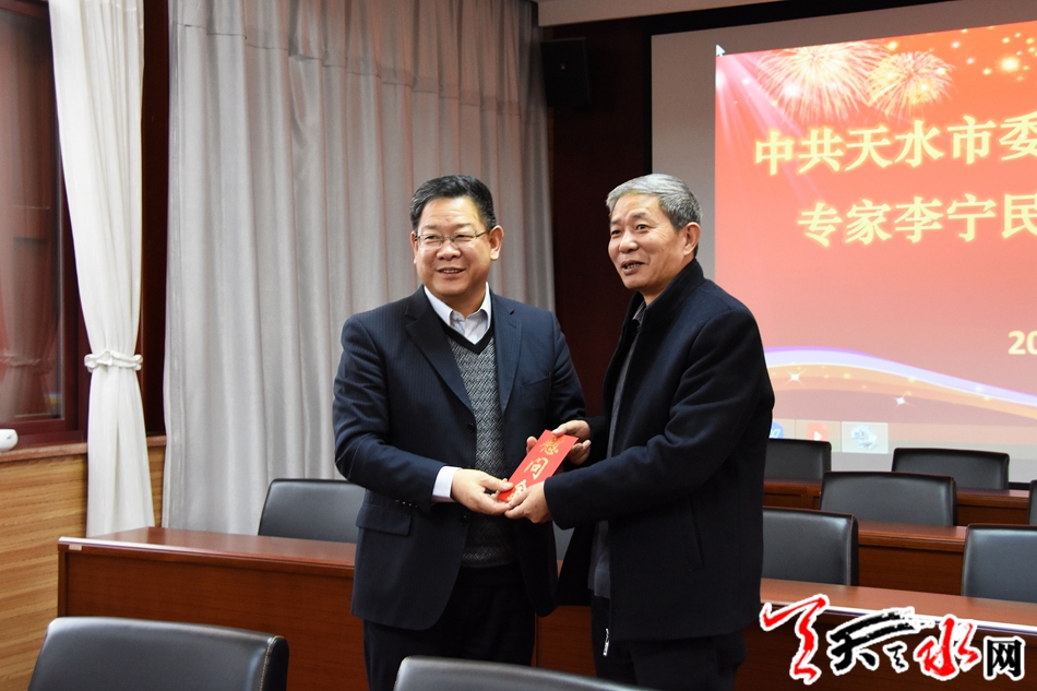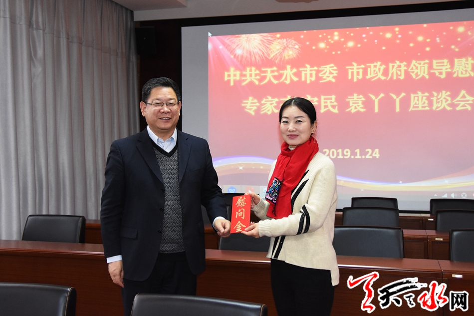 慰问中,张建杰与李宁民、袁丫丫两位专家座谈交流,了解他们的工作情况,听取意见建议,并代表市委、市政府对两位专家为我市文化事业发展作出的贡献表示感谢。他说,过去一年,两位专家在各自领域辛勤耕耘,为宣传天水文化、扩大天水影响力做了大量卓有成效的工作,得到了社会各界的广泛认可和一致赞誉。希望两位专家在新的一年里再接再厉、锐意进取,认真学习贯彻习近平总书记关于文化建设的重要论述,树牢“四个意识”,坚定“四个自信”,继续发挥优势和专长,争取在各自专业领域取得更好成绩。同时,要抓好队伍建设,着力培养更多优秀青年人才,以实际行动为我市文化事业繁荣发展作出新的更大贡献。