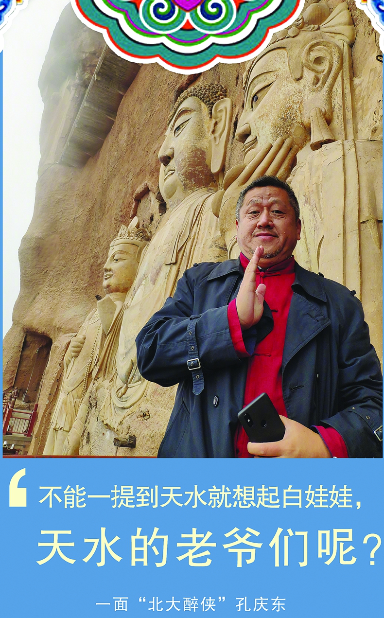 孔庆东:随着岁月的流逝,很多精美的古建形态都遭受了不同程度的破坏,这是我们无能为力的,不要试图去再造。像春秋古柏一样,用必要的支撑结构去延长建筑的生命,保留它的“历史的痕迹”有何不可?我反对重新再造,因为那毕竟不是真的。把留下来的保护好就不错了。而我们其实更应该保护的是精神,不能一提到天水就想起“白娃娃”,天水的老爷们呢?