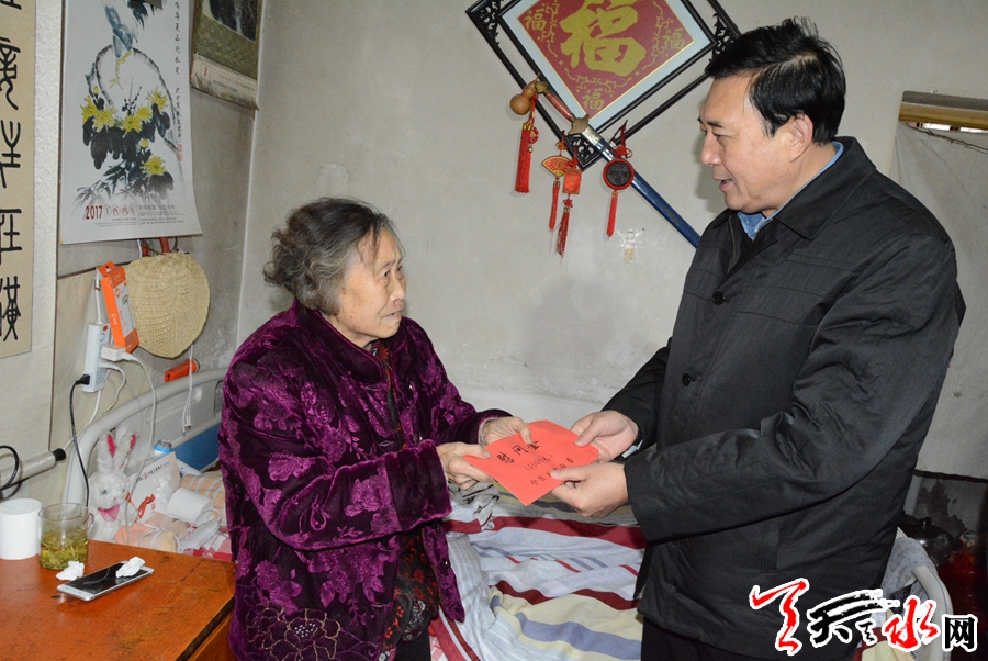 天天天水网讯【全媒体记者马哲】1月24日,市委副书记赵卫东带领有关部门负责人,赴甘谷县开展春节前“送温暖”慰问活动。市委常委、副市长刘骁,市人大常委会副主任安志宏,市政协副主席郭明兴一同慰问。