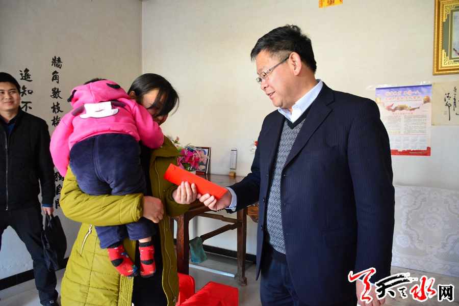 天天天水网讯【记者辛磊】1月25日,市委常委、宣传部部长张建杰来到秦州区汪川镇银河村、郑山村看望慰问联系户,为他们送去慰问金和慰问品,并致以春节的问候和祝福。