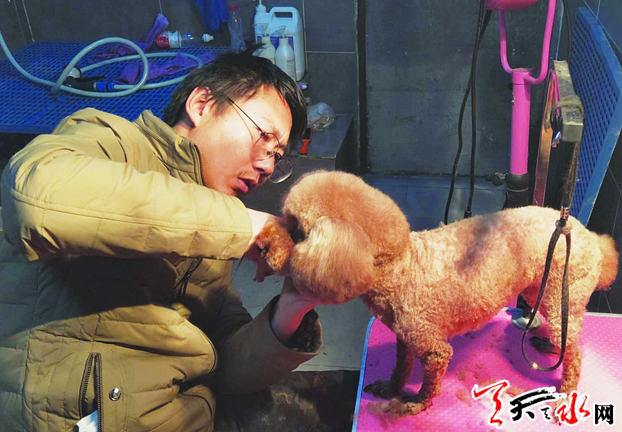 “去年春节人挺多的,几乎没有空位,最多的时候接收8只,寄养高峰集中在大年三十到正月初五。”位于民主路动员巷的一家宠物店老板马城龙一边给一只泰迪美容一边介绍,他说,大多数人在春节期间寄养一个礼拜左右,泰迪、金毛、拉布拉多等宠物最多,大型犬一天70元,小型犬一天30元。他和老婆过年也不休息,所有的时间和经历都花在宠物的溜达、喂食、洗澡等事上。