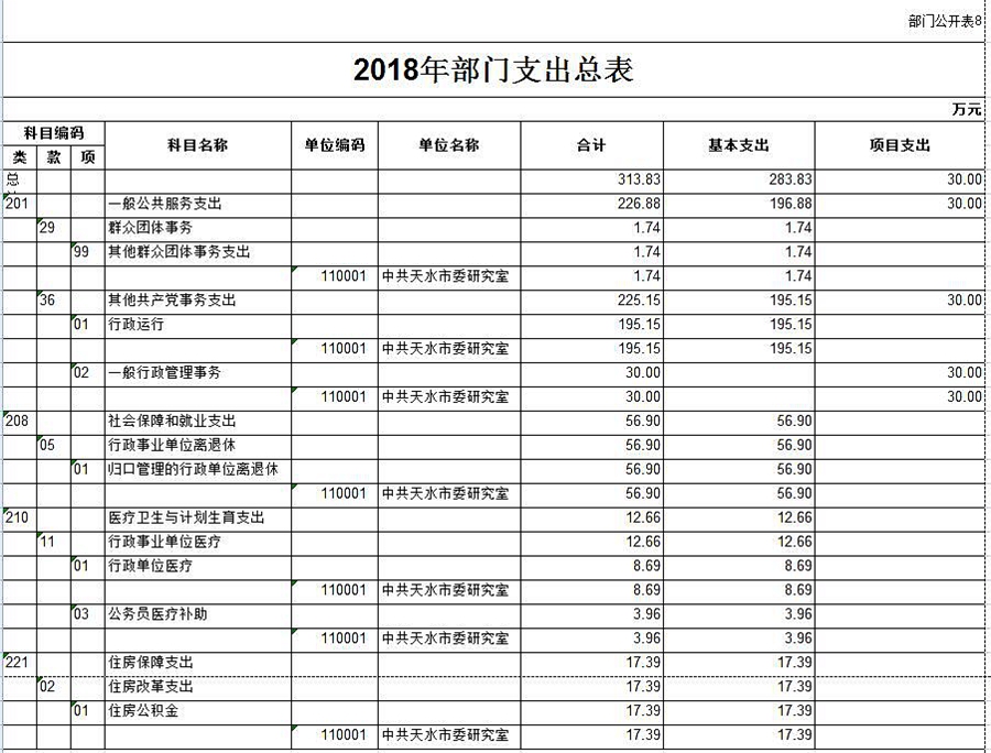 市委研究室2018年政府采购预算总额 8.83万元,其中:政府采购货物预算8.83万元。