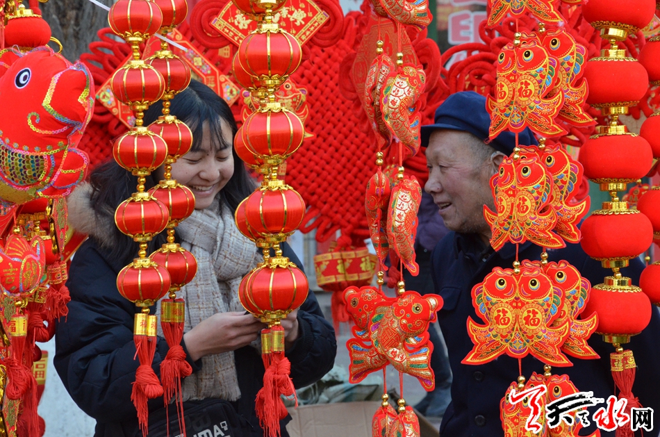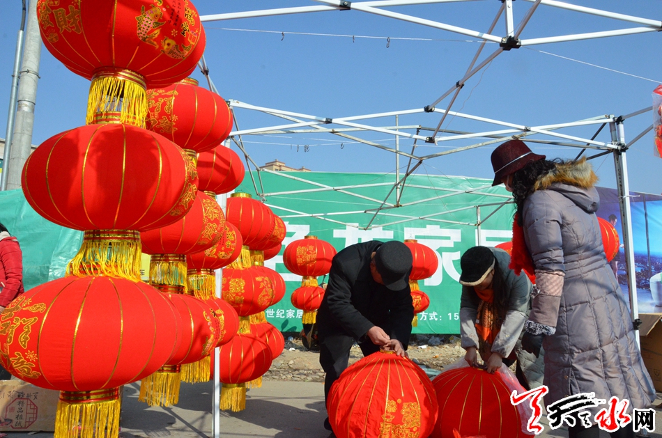 在灯笼摊点前,记者见到洛门镇裴家庄村的裴大爷带着老伴兴高采烈地选购年货。裴大爷一边挑选灯笼一边告诉记者:“今天,我和老伴专程过来赶年集,置办些年货,买对联、灯笼和蔬菜,打算红红火火过新年!”
