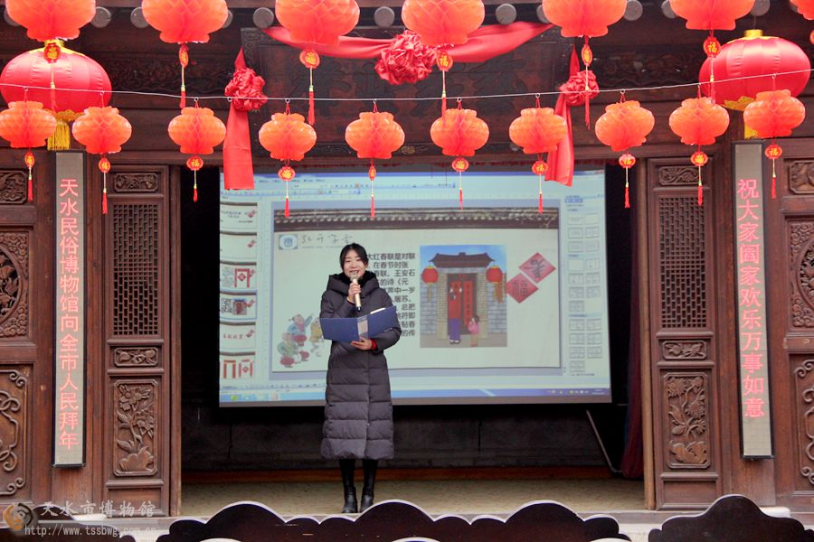 为了弘扬中国优秀传统文化,营造喜庆、祥和的节日气氛,2019年1月26日(农历腊月二十一)下午,天水民俗博物馆特邀秦州区书法家协会、天水老子文化学会、天水书画研究院等协会组织和公开招募的30多个家庭共同参加了“我为老宅写春联”活动,书法家陈安祥、张杰、赵治毅、谢勤定、雷鸣亚、李茏、熊奇录、张明道、董福元、能昌海、吴明文、汪月敏等和书法爱好者、青少年一同书写春联。