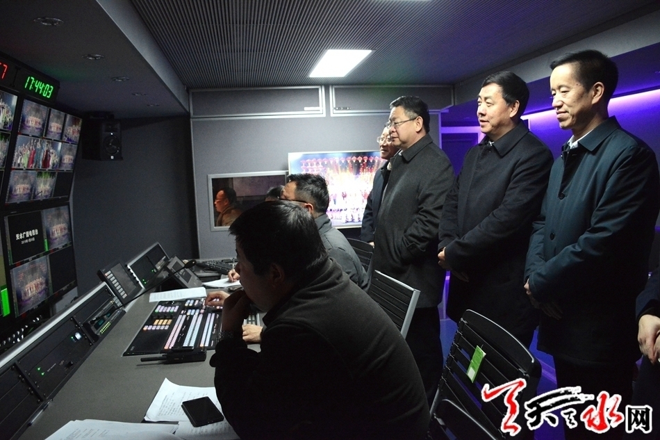 在现场观看了录制情况后,市领导指出,天水广播电视台综艺演播厅从无到有,实现了突破性发展。今年的春晚录制工作准备扎实,组织得力,场景设置精美,展示效果良好。他们强调,节目编排一定要突出政治性、唯一性、地方性和群众性;要大力弘扬主旋律、传播正能量,充分展现全市人民在新时代的获得感和幸福感;要向全社会传递乐观健康的精神力量,让广大观众深切感受到我市发展的新成就和人民生活的新变化;晚会后期制作,要发扬工匠精神,精益求精,努力把节目做成精品,为全市人民奉献一台高品味、高质量的视听盛宴。