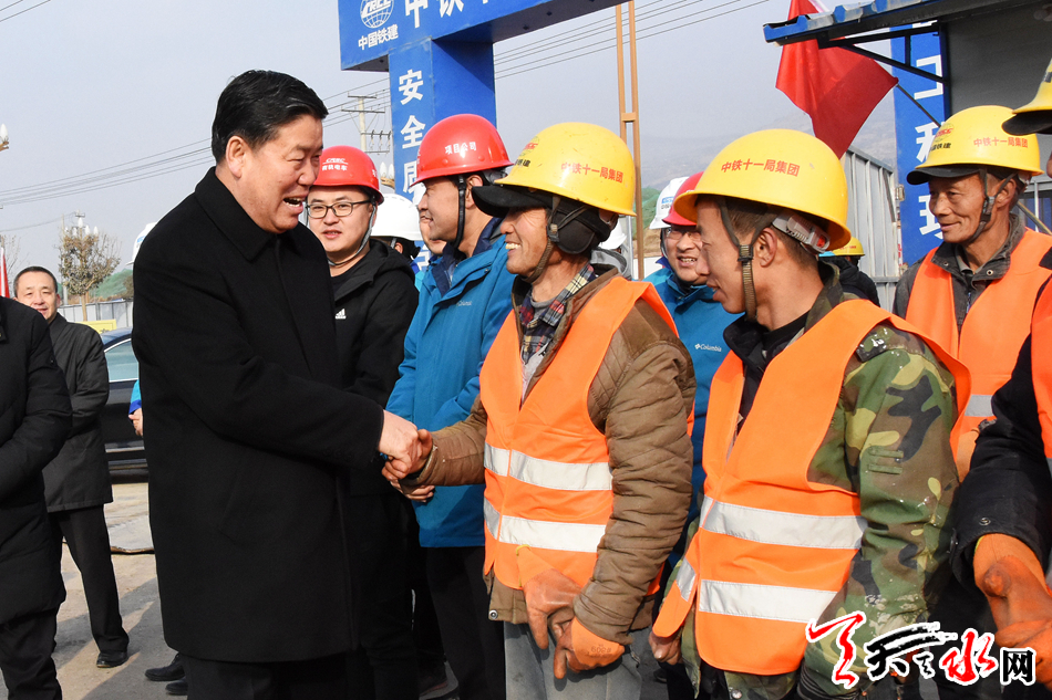 当天是农历腊月二十七,大街小巷张灯结彩、年味渐浓,此时,天水有轨电车项目施工正酣。王军一行来到项目建设现场,实地察看工程进展,听取后续施工计划,看望慰问奋战在施工一线的建设者们。王军说,轨道交通建设是我市补短板、利长远的重大民生工程,项目开工以来,参建各方协同配合、奋力攻坚,付出了艰辛劳动,取得了显著成效,感谢大家为城市建设作出的贡献。希望大家总结经验,再接再厉,全力以赴抓质量、保安全、促进度,高标准推进项目建设,确保工程如期建成,让广大市民早日享受到方便快捷的出行条件。