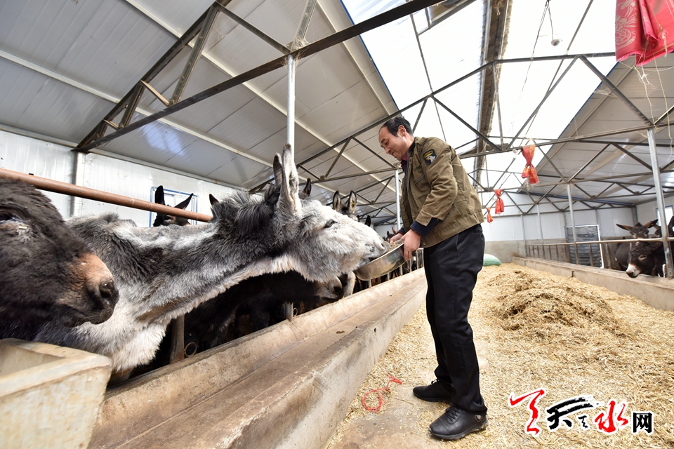 “张家川县自古有养牛羊的传统,依托草木丰沛的自然资源,如何在精准聚焦‘两不愁、三保障’的基础上,更大地实现农民致富增收,镇上下了很大气力寻找脱贫攻坚的法子。”恭门镇副镇长马剑锋说,2018年,恭门镇在帮扶贫困户发展种植业的基础上,经过充分征求党员群众意见,走访调研村情实际,成立了永业种养殖农民专业合作社,规划申报了胶原驴养殖项目。